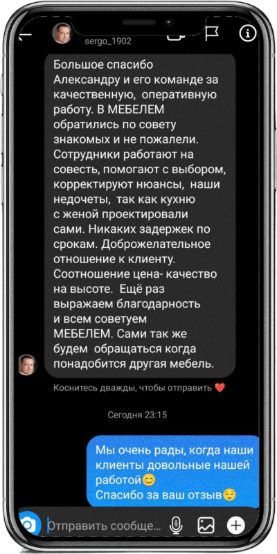 Мы гарантируем, что минимальный срок изготовления мебели 14 дней. Вы можете начать пользоваться вашей новой мебелью уже через 14 дней